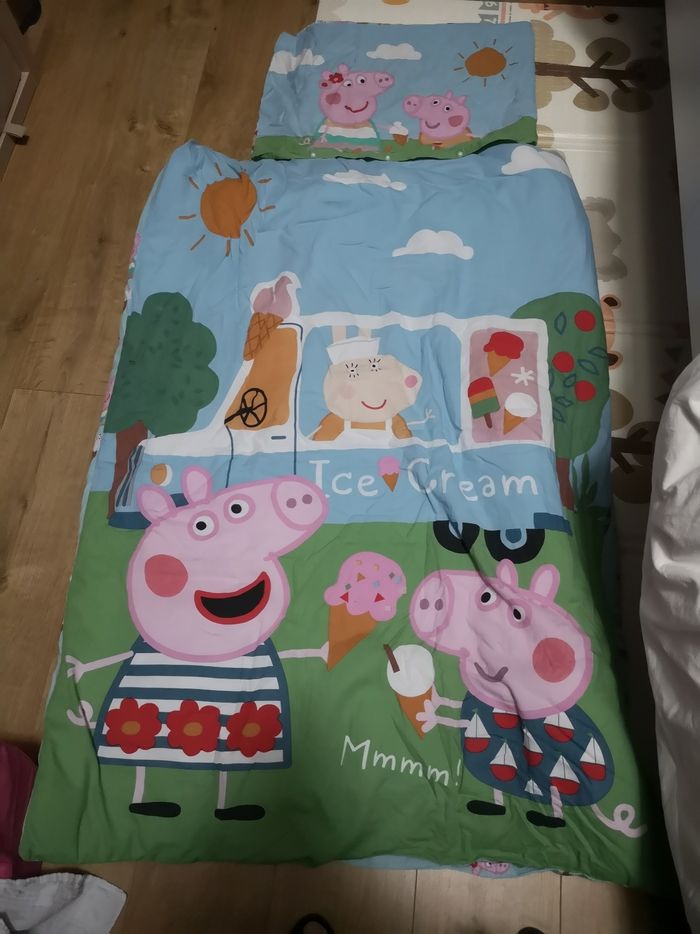 Lot de 3 parures de lit (housse de couette et taies d'oreiller) en très bon état. 1 parure Bambi, 1 parure panpan et 1 parure peppa pig.
