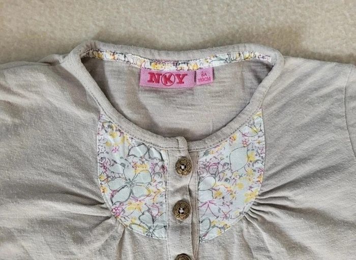 T-shirt manches longues nky 5 ans 110 cm En très bon état Couleur beige Possibilité de raccourcir les manches