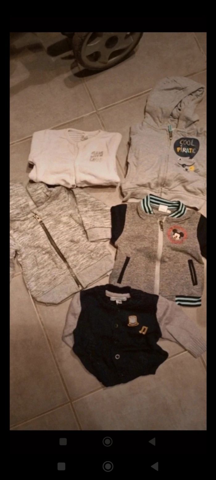 Lot 3 mois comprenant : - une combipilote - 2 pyjamas velours - 1 ensemble - 2 tee shirt manches longues - 1 pull - 7 pantalons - 1 salopette GAP épaisse - 5 vestes - 1 ensemble shirt tee shirt manches courtes - 2 tee shirts - 1 combi - 2 salopettes ( un peu plus légère) Soit 26 pièces en très bon état voir neuve pour certaines Diverses marques