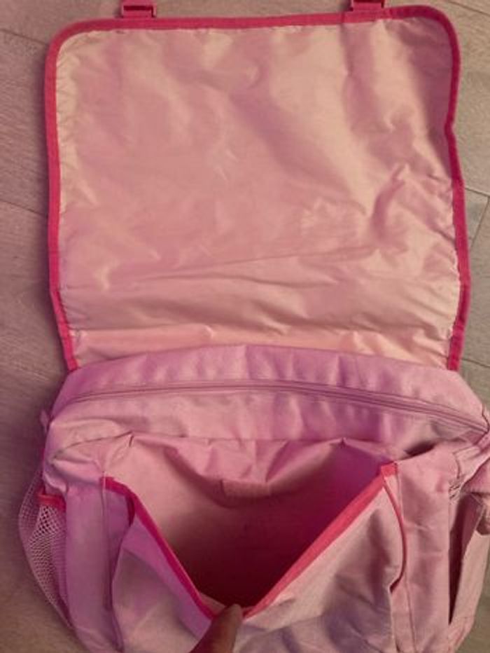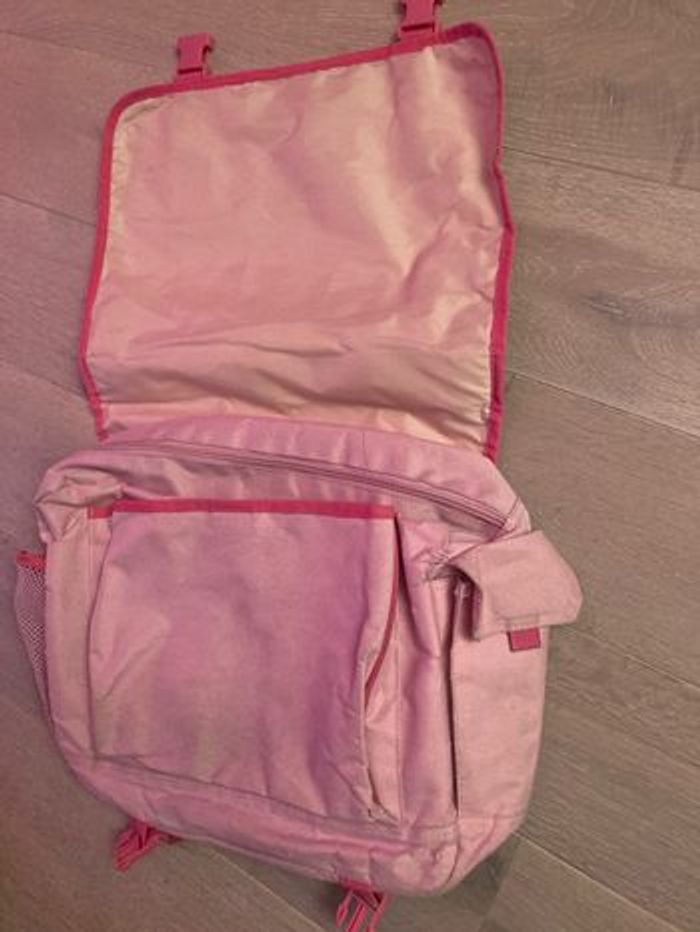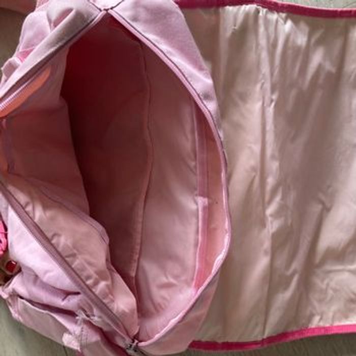 Cartable Hello Kitty avec poches intérieures, extérieures. Poches également sur les côtés pour une bouteille d’eau ou autre. État correct