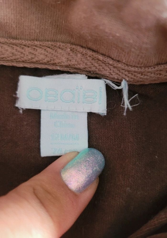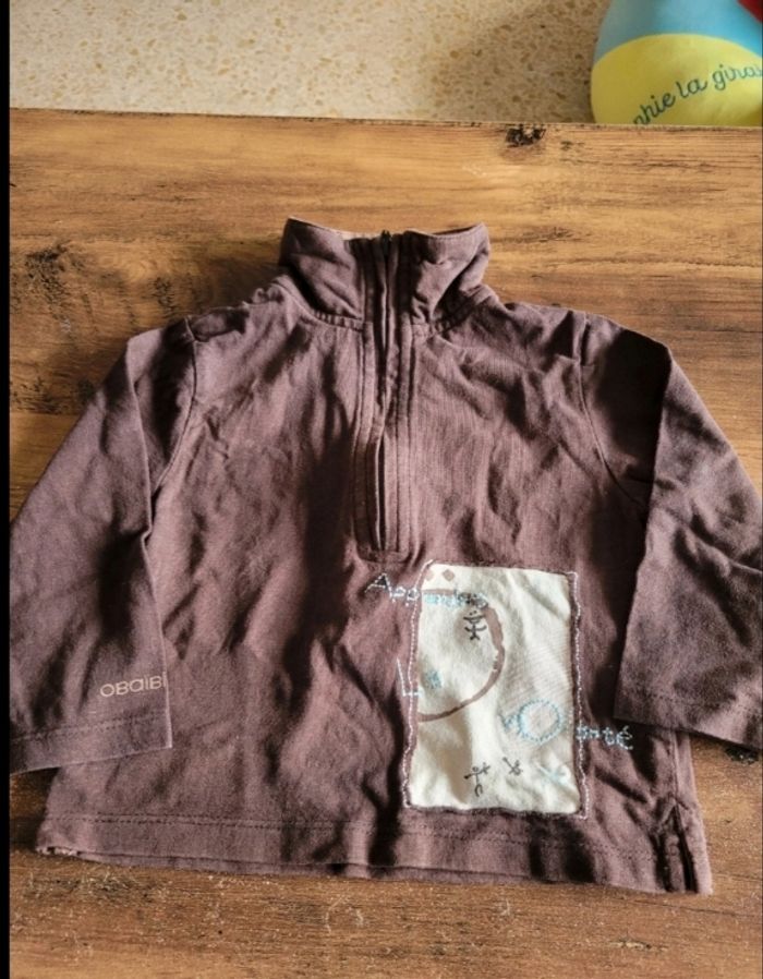 Petit pull Manche longue Avec fermeture éclair devant Couleur marron Taille 12 mois Matière 100% coton