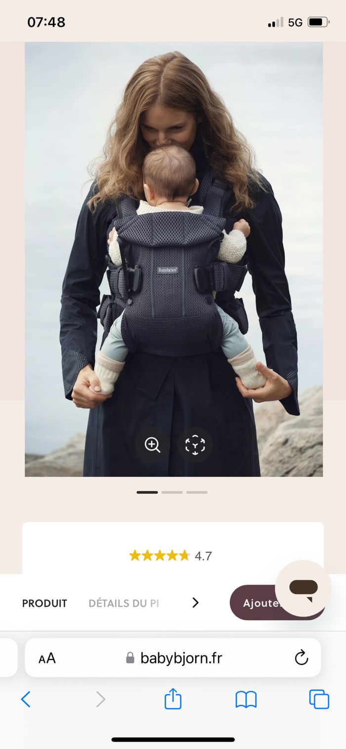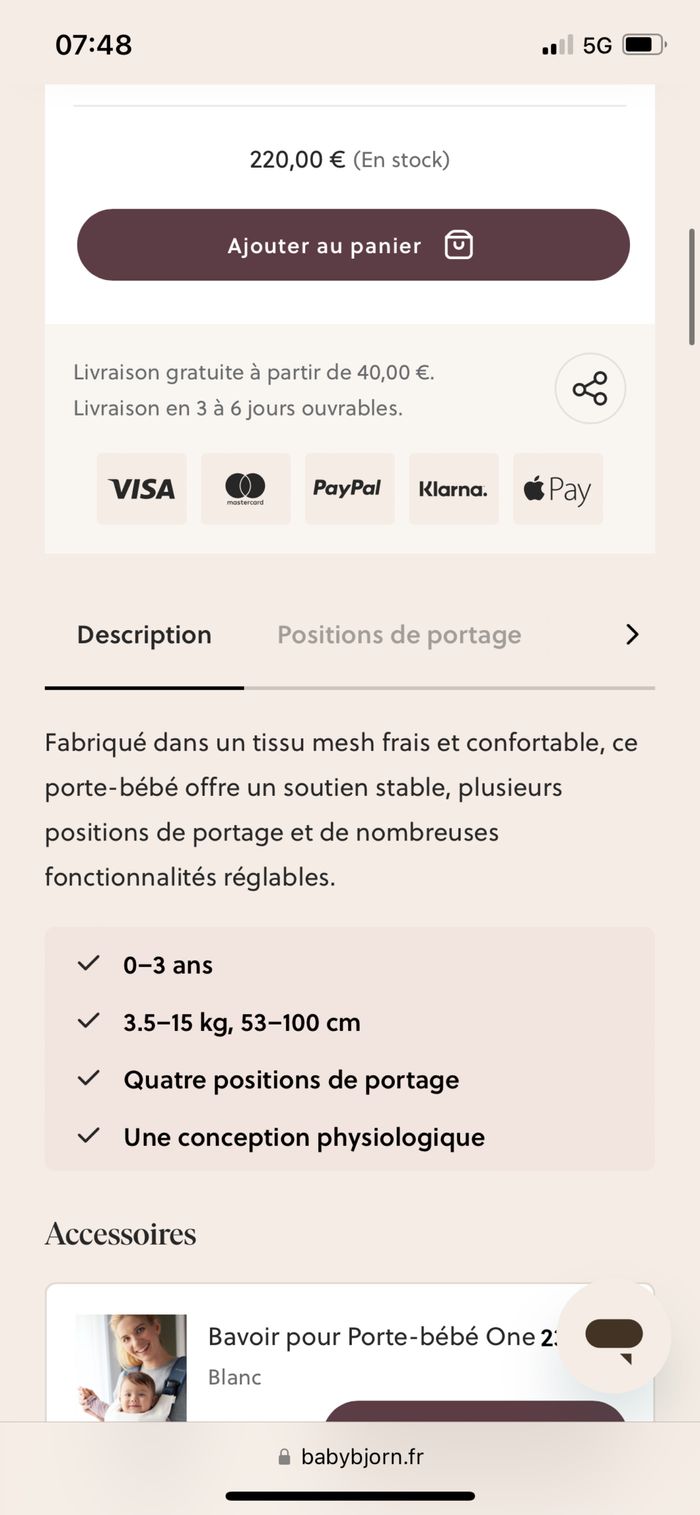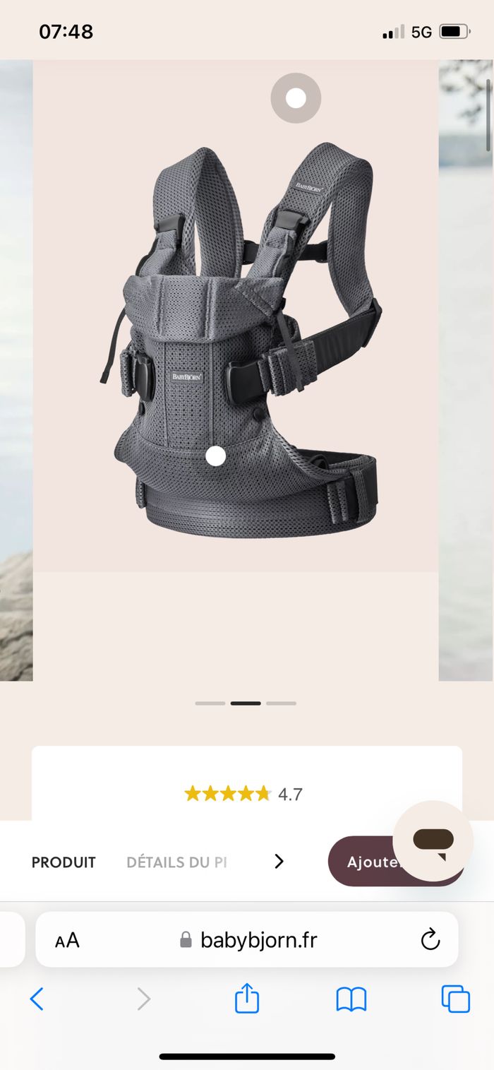 En très tres bon état, peu utilisé car bébé ne supportait pas le portage. 4 positions possibles, et face au monde ok à partir de 6 mois. Portage jusqu’a 3 ans avec ce modèle.