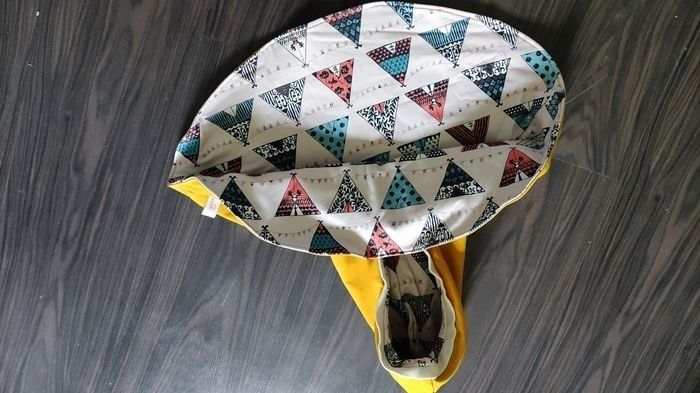 Vends ce petit poncho imperméable de la créatrice "les petites choses de Julia" pour les jours de pluie, pratique pour la voiture. Très peu porté. 6 mois-9mois.