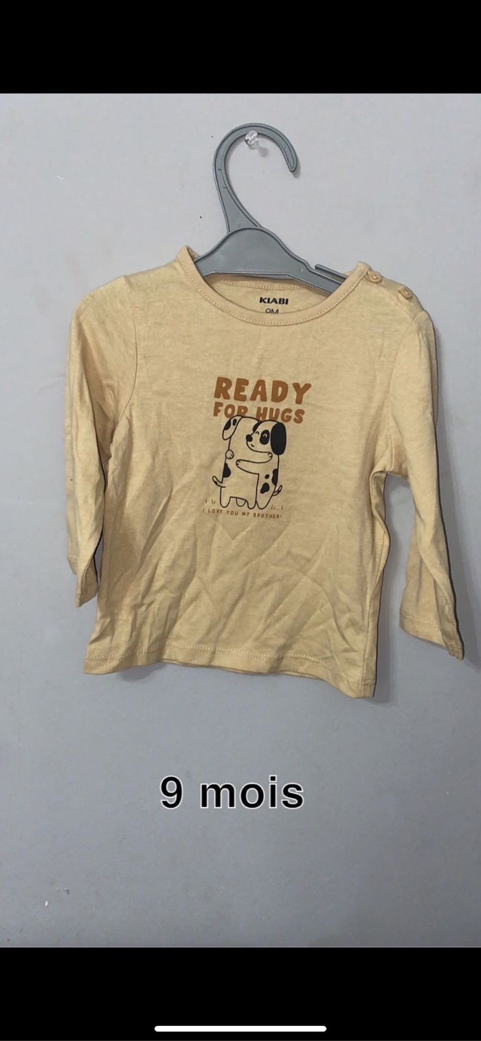 Lots de vêtement bébé 1 pantalon 1 tee-shirts et 1 sous pull le tout en 9 mois