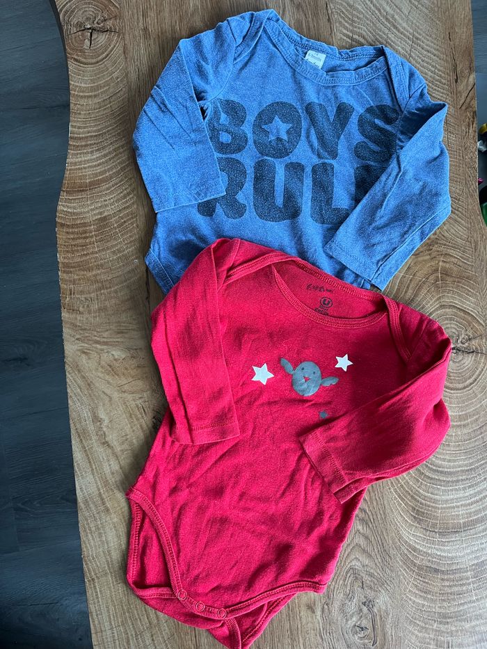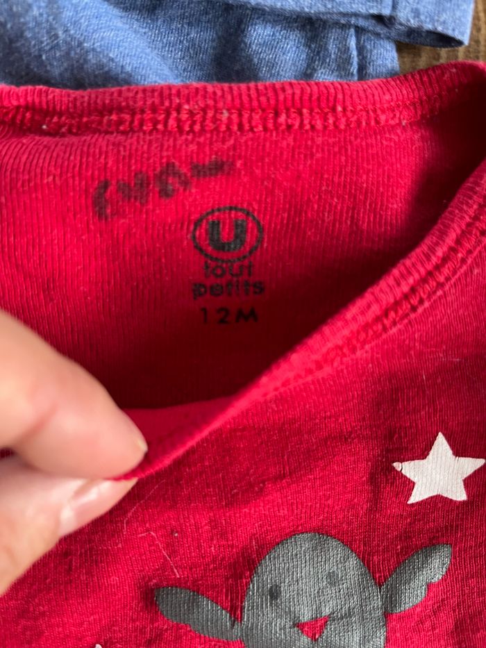 Lot de 2 bodies manches longues Bon état général Taille 12 mois - 74cm Marque Dopodopo et U tout Petits