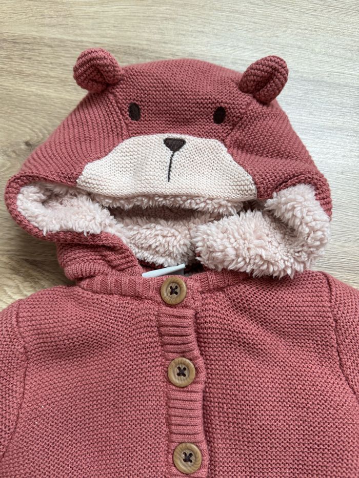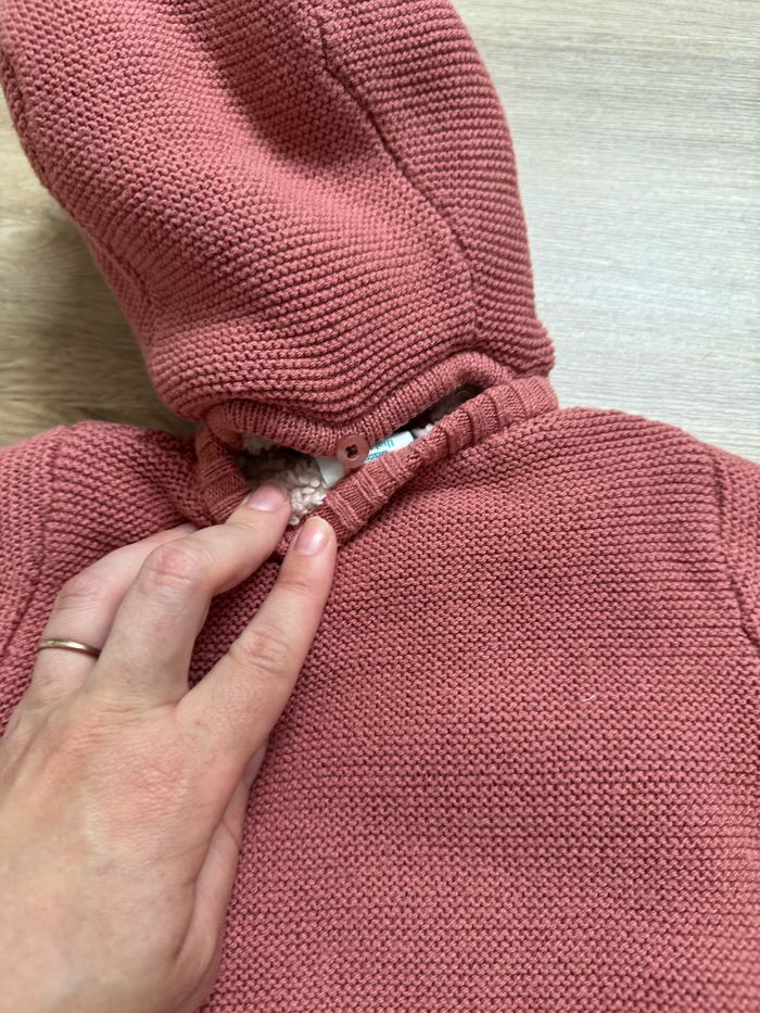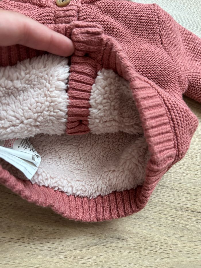 Veste polaire fille Porté 1fois à la sortie de la maternité mais ma fille était tellement petite 😅que la veste était beaucoup trop grande. Taille naissance mais plutôt 1mois Vieux rose La capuche peut s’enlever Entièrement polaire même à l’intérieur des manches