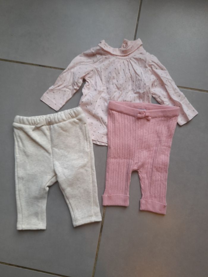 Lot de 2 pantalon chauds et un haut coton bébé 6 mois - photo numéro 1