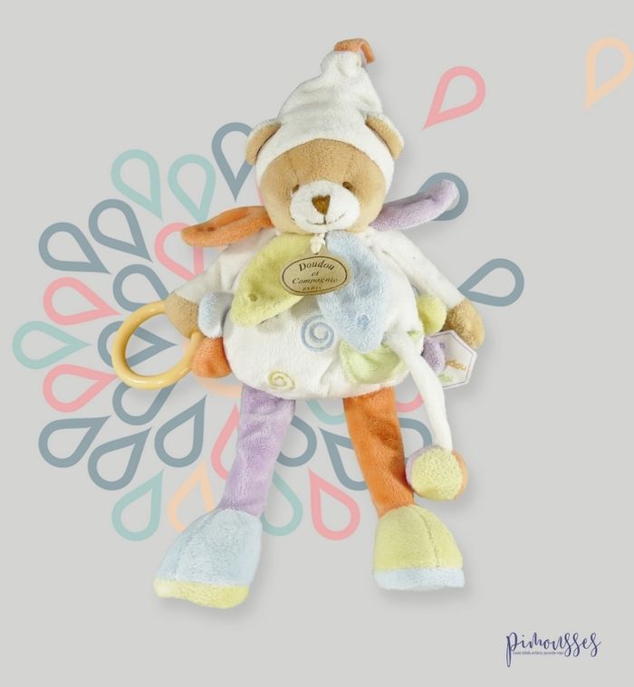 Doudou ours pantin velours blanc multicolre spirales Doudou et Compagnie 31 cm - photo numéro 1
