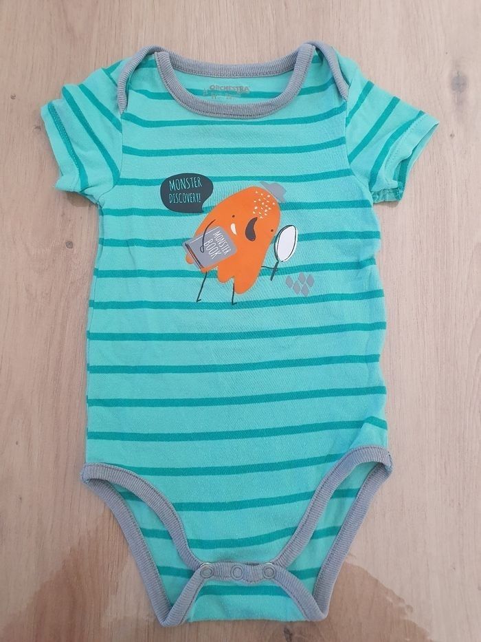 Lots 4 bodies manche courte, 2 bodys sont légèrement tachés. Taille 9 mois Marques "orchestra" et "petit bateau" Bon état