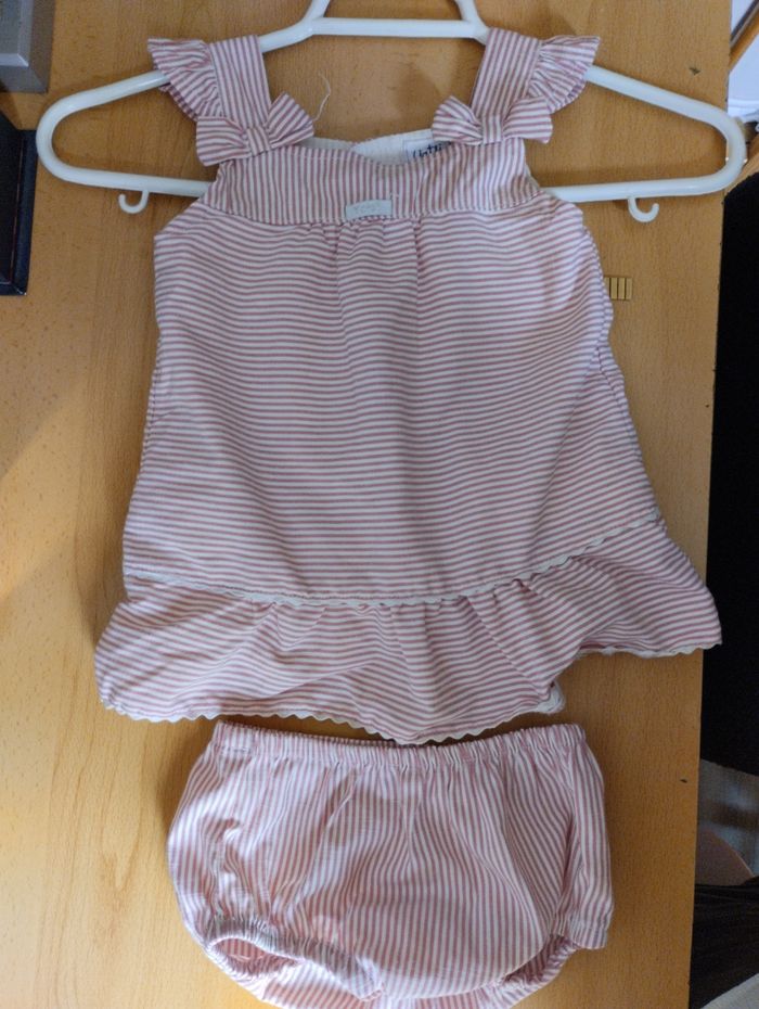 Ensemble été : blouse+ culotte assortie. Taille 9 mois. Très bon état.