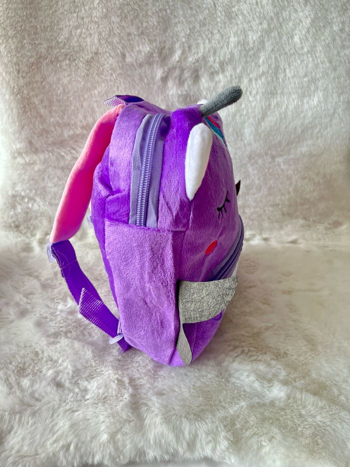 Sac à dos en peluche Licorne violette Dimensions H 23 cm x L 21 cm x épaisseur 9 cm Pour enfant de 1 à 5 ans