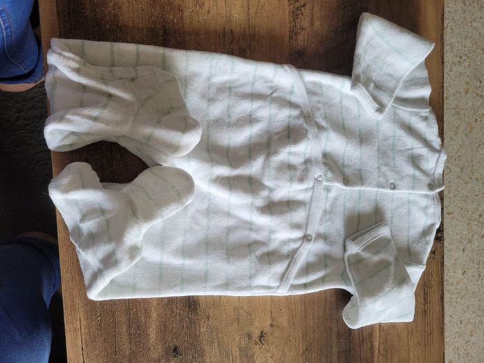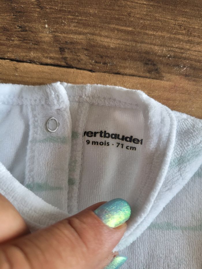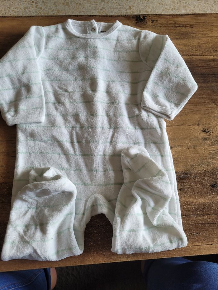 Petit pyjama Manche longue Mi saison Couleur blanc avec du vert et dessin de baleine Taille 9 mois Matière coton je pense Attaché derrière