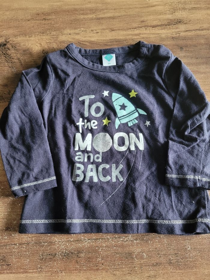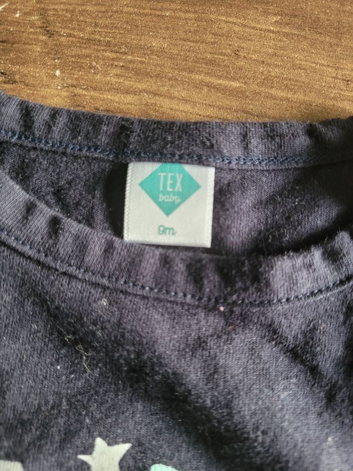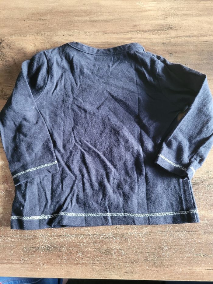 Petit T-shirt Manche longue Couleur bleu marine Taille 9 moi Mi saison Attaché en haut a gauche Matière 100% coton