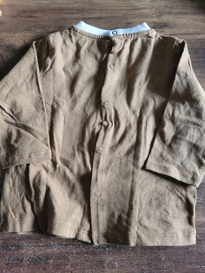 Petit T-shirt Manche longue Couleur marron clair Taille 9 mois Attaché derrière Mi saison Matière 100% coton