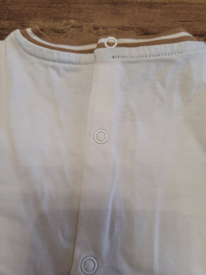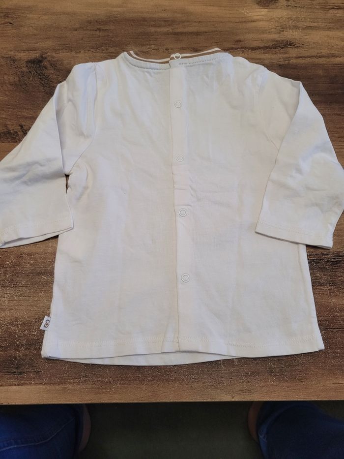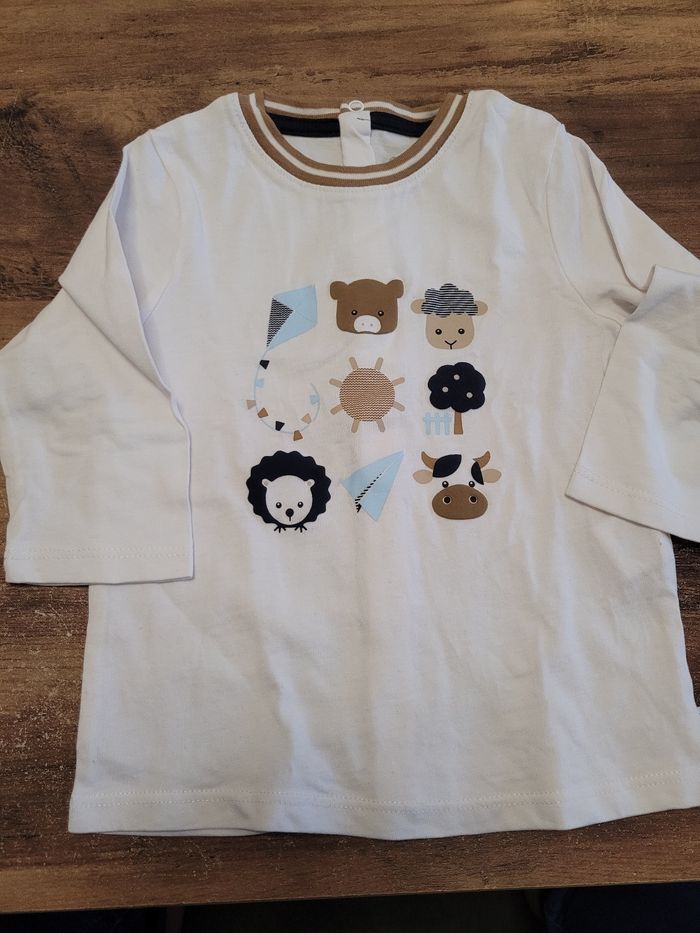 Petit T-shirt Manche longue Couleur blanc avec des animaux Taille 9 mois Mi saison Peux allé à une petite fille comme pour un petit garçon Attaché derrière Matière 100% coton