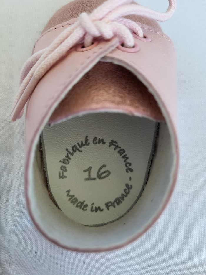 Chaussures bébés en cuir rose Point 16 Made in France 🇨🇵