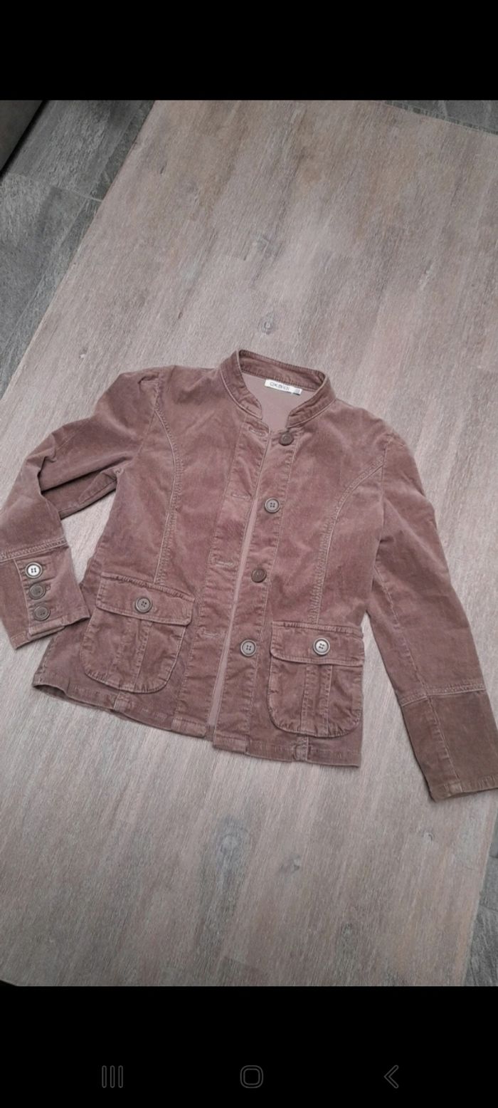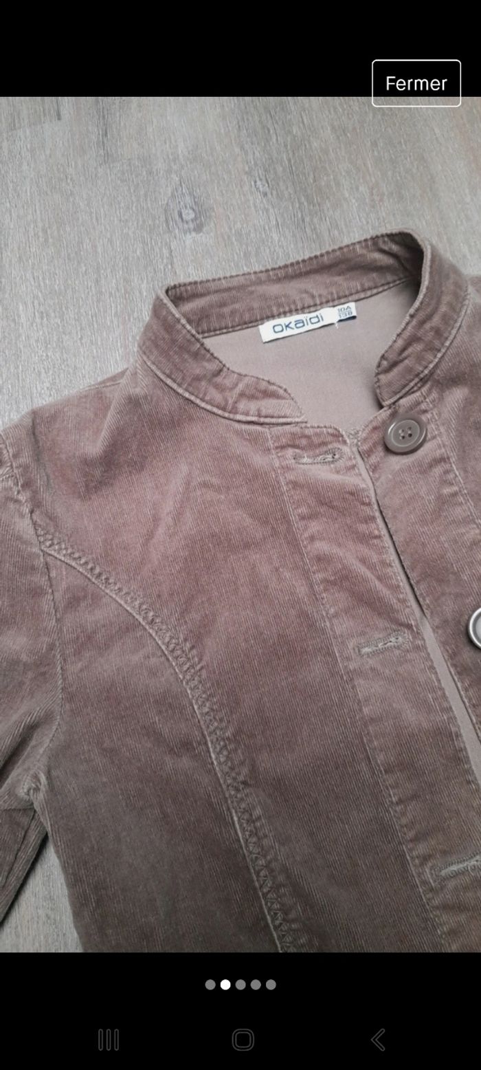 Veste fille velours taille 10 ans okaidi Griffes sur les boutons des manches et une tache