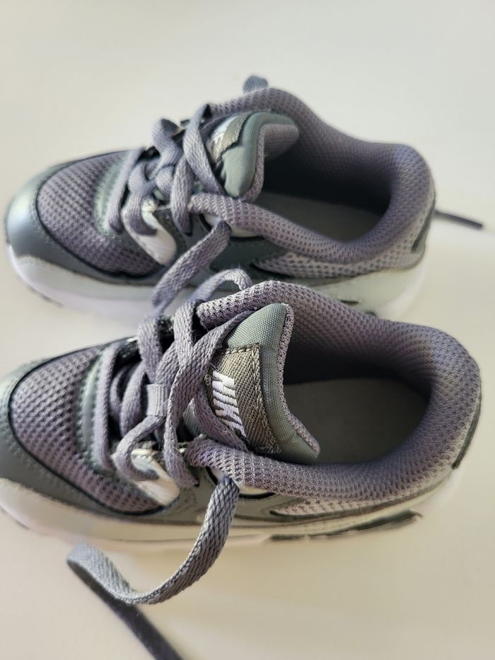 Baskets pour garçon à lacets, taille correctement, article en très bon état, quelques petits signes d'usures sur les côtés. Très peu porté.
