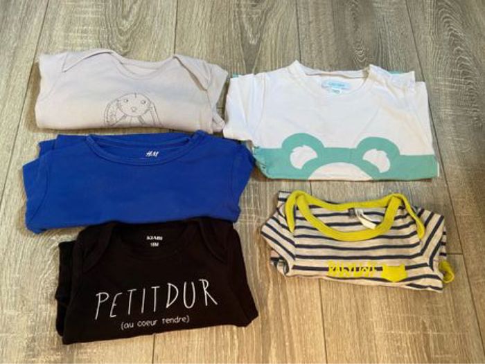 Lot 5 pièces 18 mois 4 bodies et 1 t shirt Différentes marques