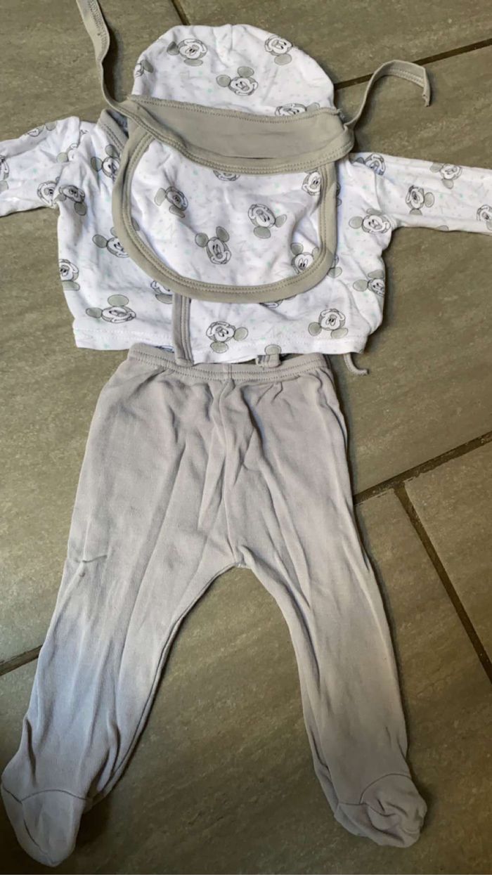 Ensemble Pantalon gilet bavoir et bonnets Mickey naissance /1 mois - photo numéro 1
