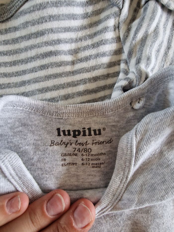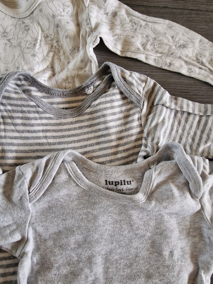 Lot de 6 bodies manche longue pour garçon ou fille de la marque Lupilu et TEX taille 6-12 mois en très bon état, porté quelques fois.