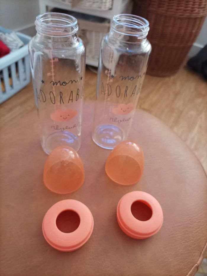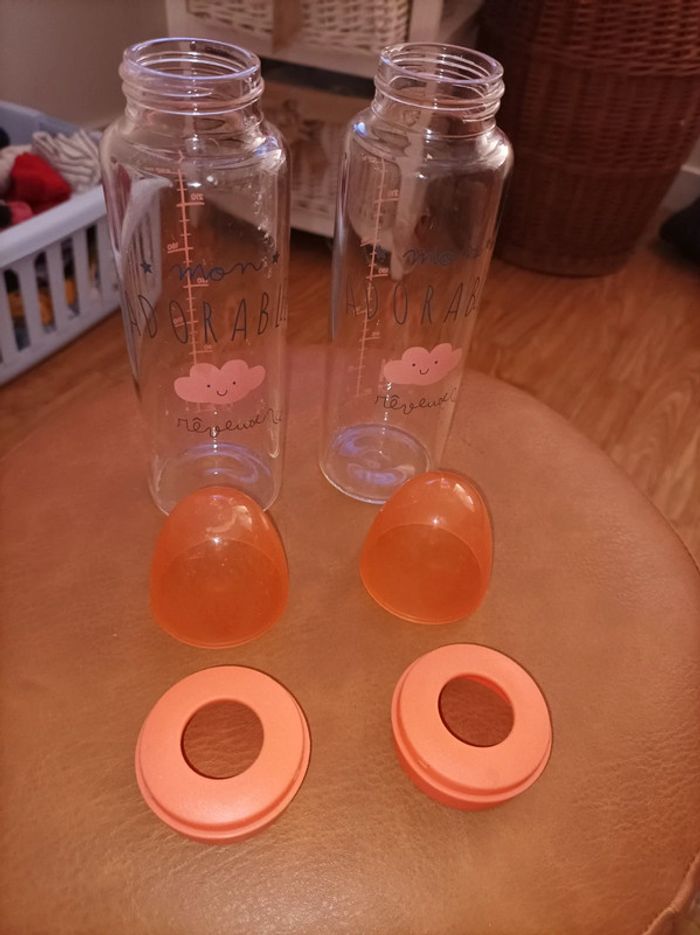 Lot de deux biberons en verre avec capuchon de 240 ml (vendu sans tétine)