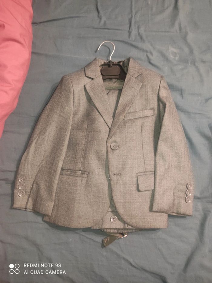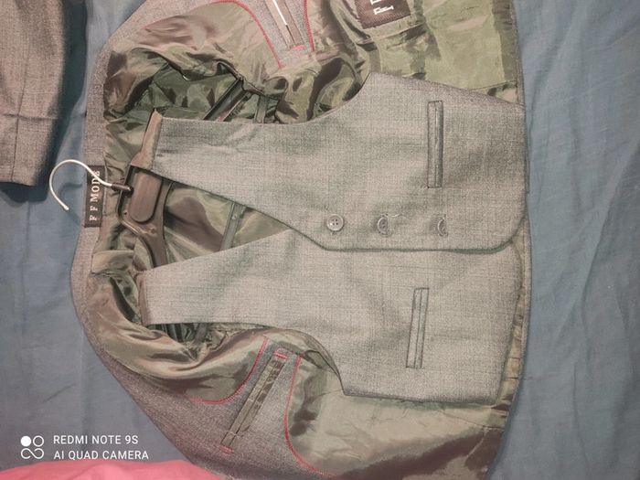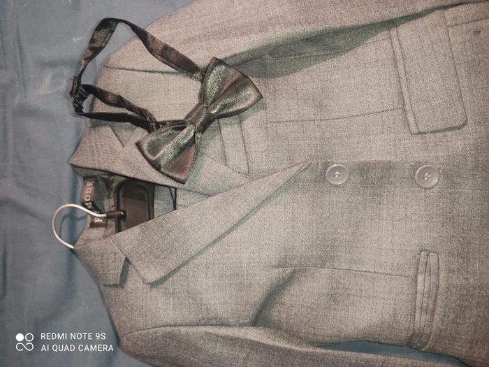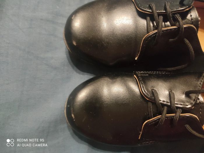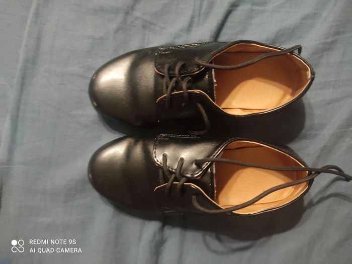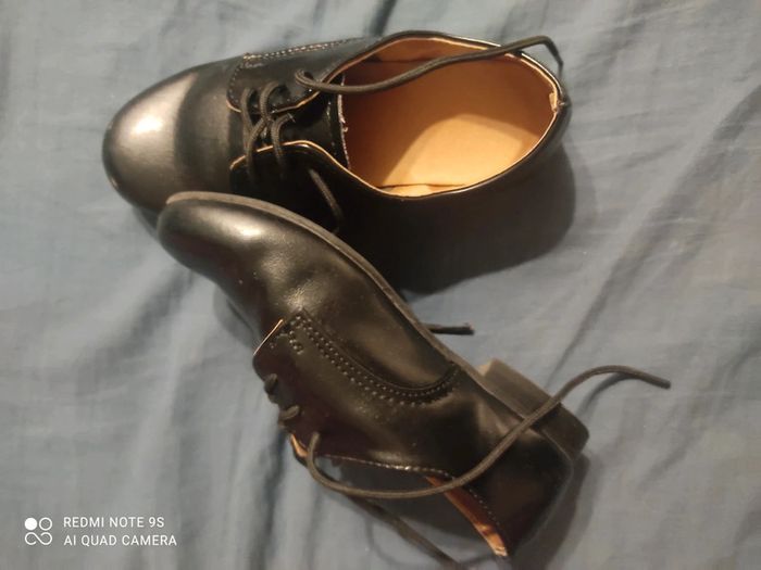 Vend costume 3 pièces pantalon, veste, gilet et noeud papillon Chaussures 18 cm. Noire avec légère égratignures devant.