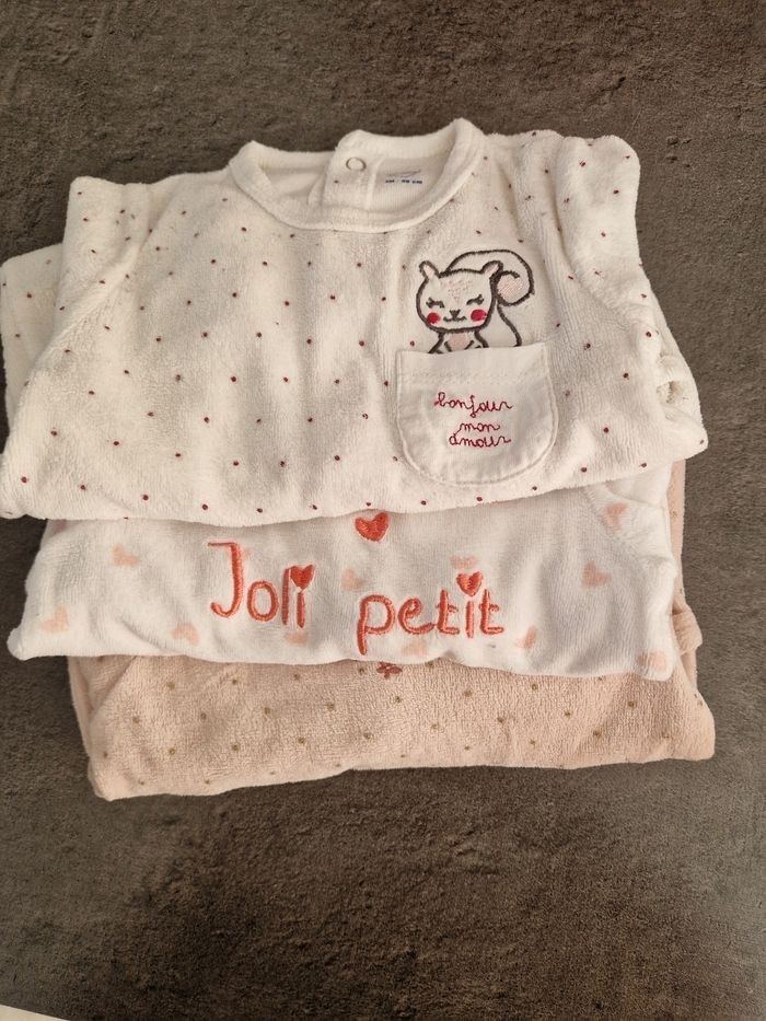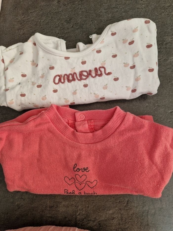 Bonjour vend lot vêtements bebe fille 3 mois 4 •bodys manche longue 21 •tee shirt manche courte 11 •pyjamas 8 •ensembles 2 •gilets 3 shorts 4 robes 45e