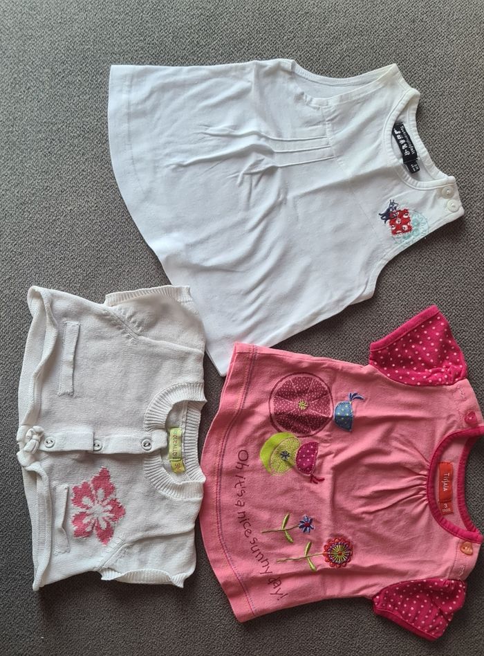 1 t shirt tissaia 1 gilet bisou caillou 1 debardeur tout compte fait