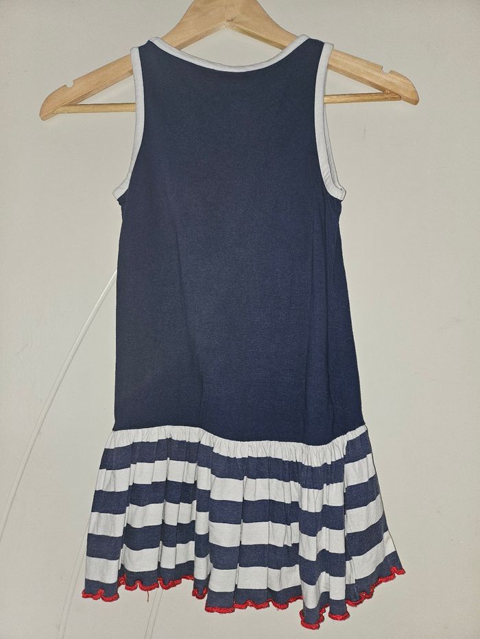 Robe débardeur bleue marine et blanche en coton en TBE, motif Minnie Taille 8 ans, marque Disney