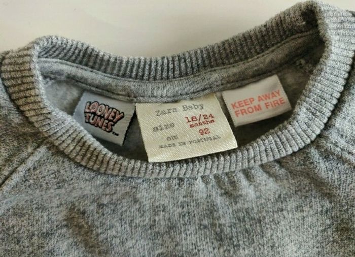 Pull gris Zara Looney Tunes 18-24 mois,porté 2 fois