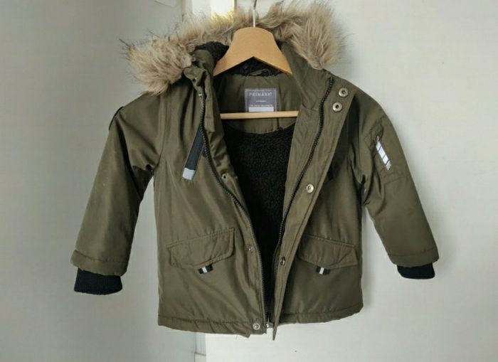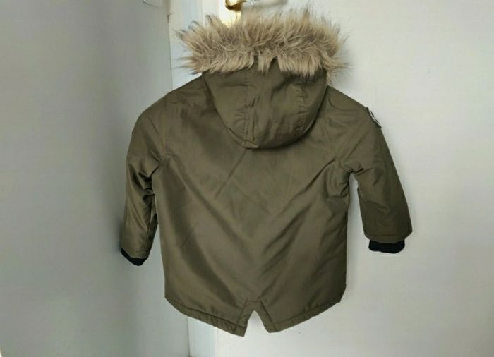 Manteau à capuche,couleur kaki,2-3 ans,manche gauche légèrement erraflé,vraiment rien de bien méchant, en très bon état pour une seconde vie.