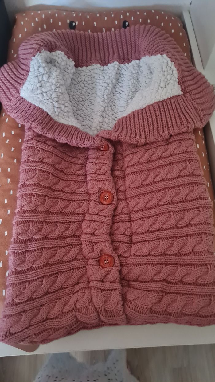 2 nid d ange en bon état mis au debut de la naissance de ma fille fait son effet à la maternité car on voit tous le temps des gigoteuse mais la de voir son enfant dedans c est magnifique belles photos assuré et en même temps bébé est bien au chaud tellement c est molletonné à l intérieur Lot peut être dissocié