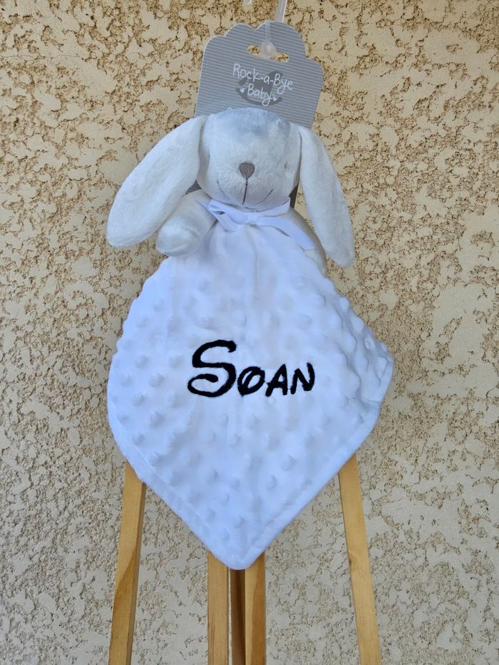 Doudou lapin blanc Prenom broder Couleurs et écriture à choisir