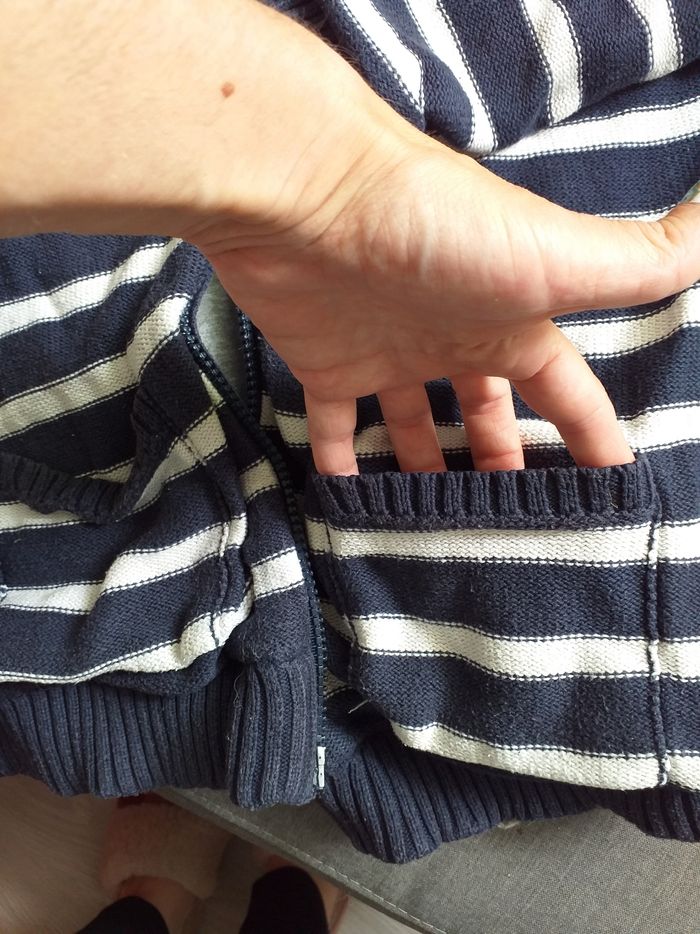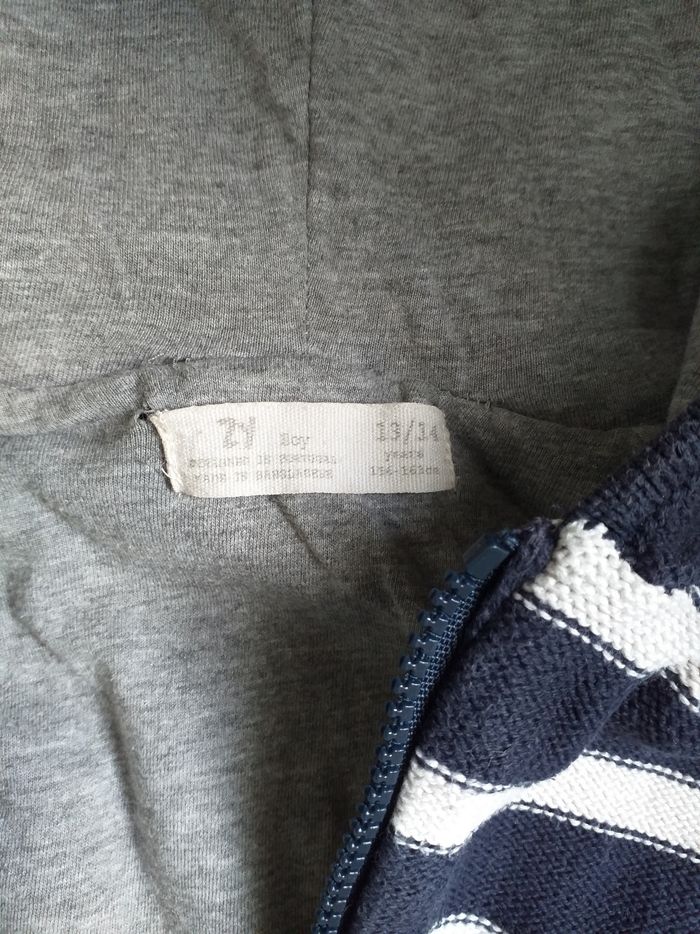 Veste pour ado garçon de couleur bleu et blanc casser,avec la capuche et 2 poches sur le devant de la veste.