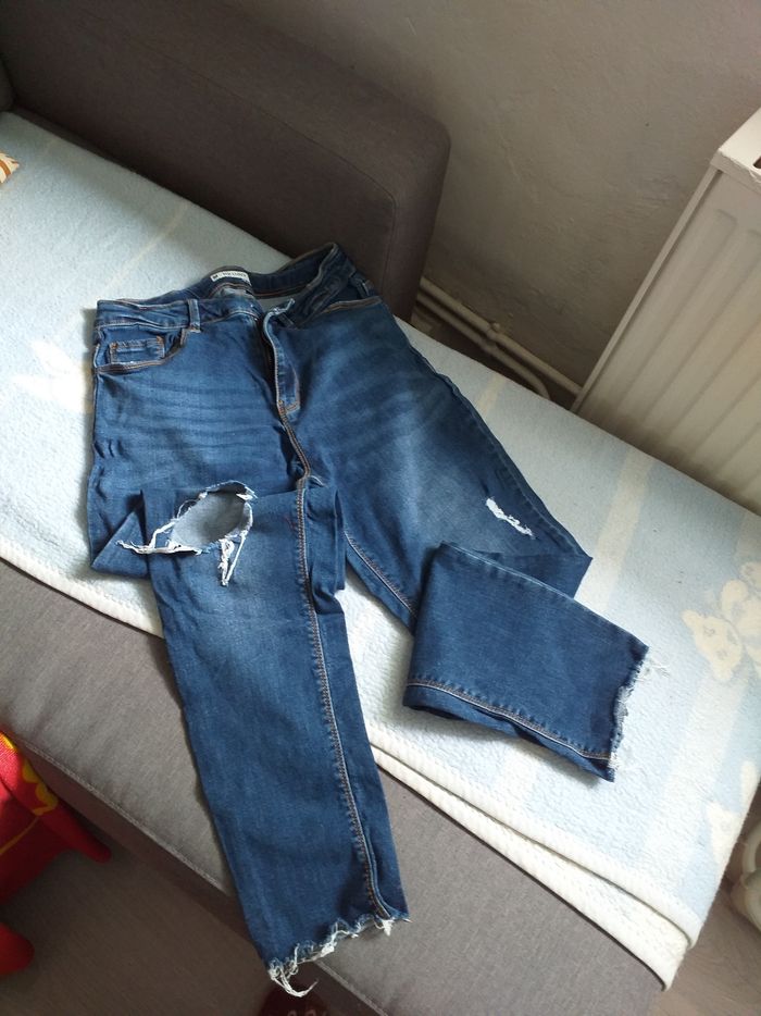Jeune coupe slim,de couleur bleu Stone Avec découpe sur le devant,achete comme cela. Mon fils la très peu porter.