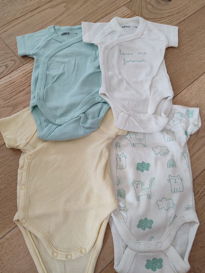 4 bodies bébé mixte manches courtes.