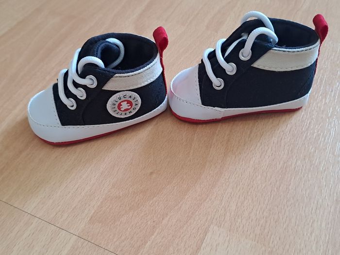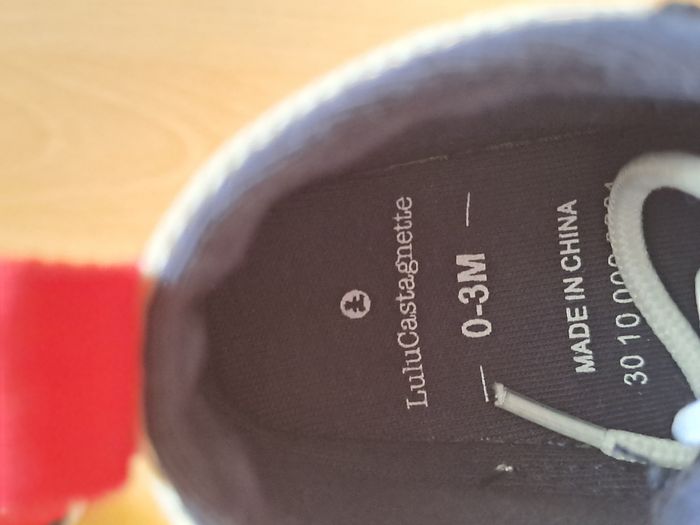 Chaussure bébé nouveau né jamais portée taille 0-3 mois équivaut a une pointure de 16. Marque lulu castagnette proviennent de Gémo. Valeur neuve 10€