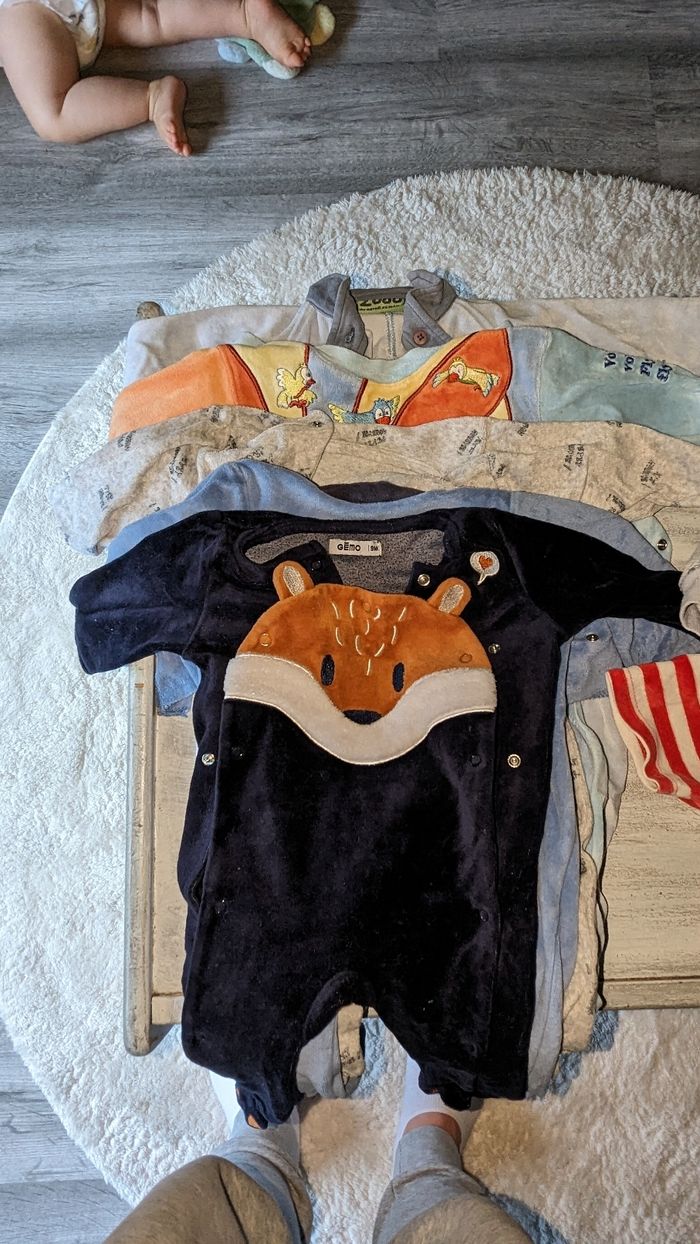 Lot 5 pyjamas 9 mois + 2 hauts pyjamas, tour en velours