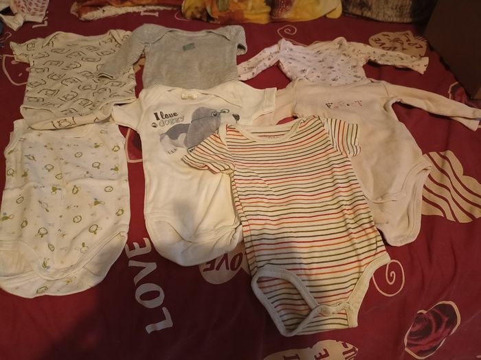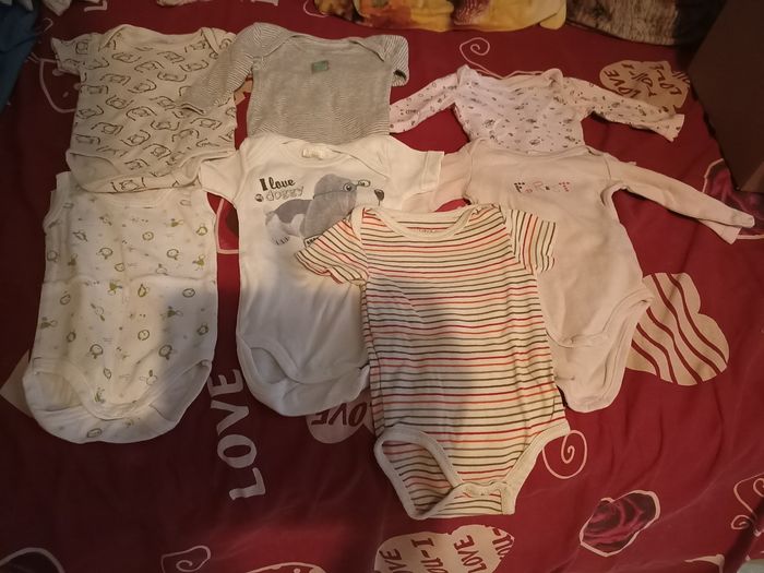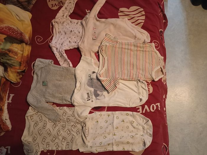 Vend ce lot comprenant 7 bodies fille. 3 bodies manches longues, 3 bodies manches courtes et 1 sans manche. En très bon état. Prix 15 euros