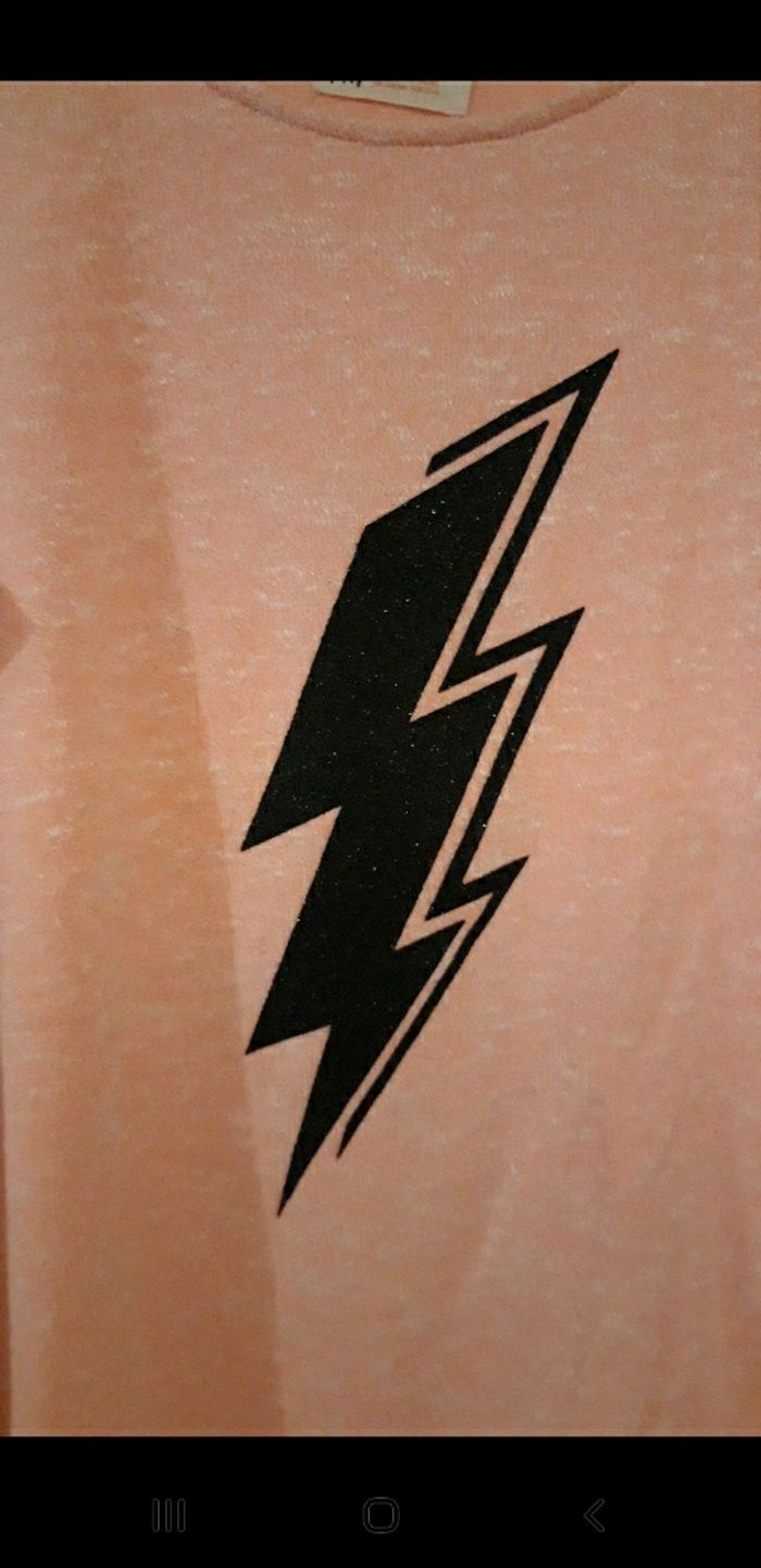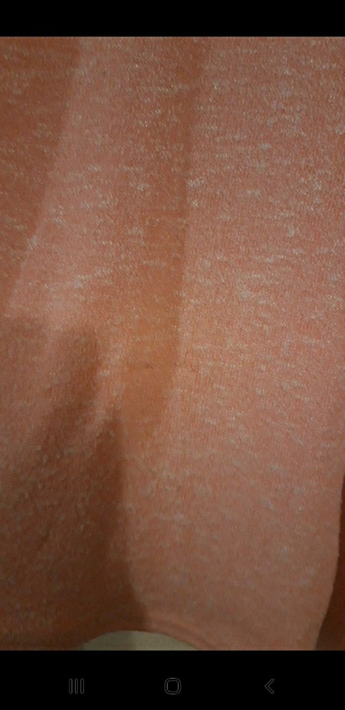 Pull de chez " H & M " Excellent état sauf 2 petit fil tiré ce voit pas de l'extérieur mais de l'intérieur Taille 12 ans Couleur rose / saumon moucheté blanc