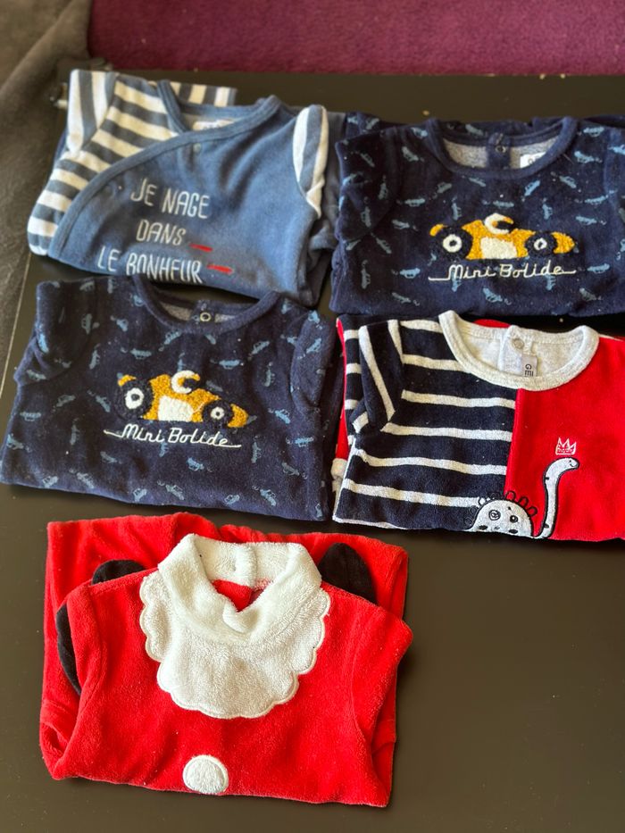 Lot de 5 dors bien en velours. 1-3 mois. Marque : gemo, Kiabi. En très bon état.