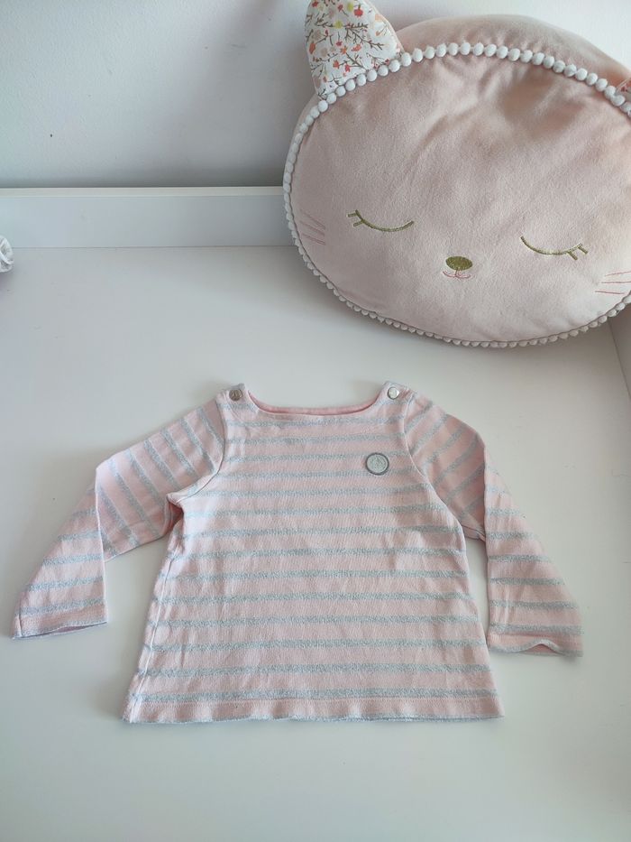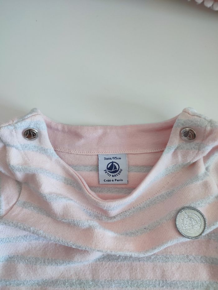 Pull fin rose et argenté petit bateau Taille 3 ans En bon état car bien porté Aucune tâche ni trou