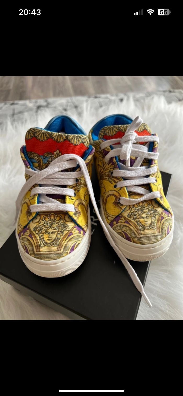 Basket Versace Très bon état porte 2-3 fois pas plus. Petit défaut (voir dernier photo, à cause lavage en machine), mais ces non vraiment très bon état. Prix non négociable, VRAI ET AVEC FACTURE