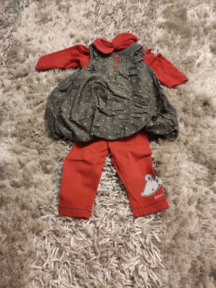 Ensemble 3 pièces Tee shirt manches longues , robe et pantalon Motif souris Taille 1 mois 54cm