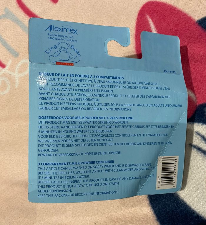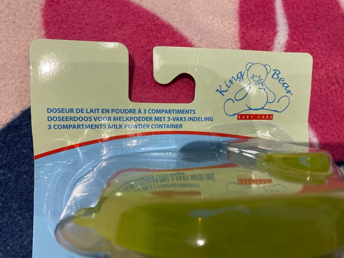 Doseur de lait en poudre à 3 compartiments Marque King Bear > Baby care Neuf toujours emballé (emballage un peu plié à l’arrière côté gauche)