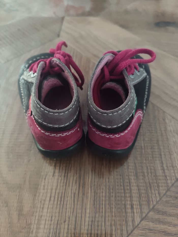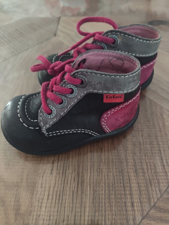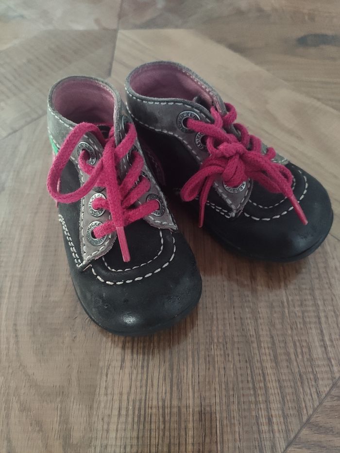 Chaussure Kickers taille 19 noire et rose Bon état Légèrement abîmée sur le devant de la chaussure
