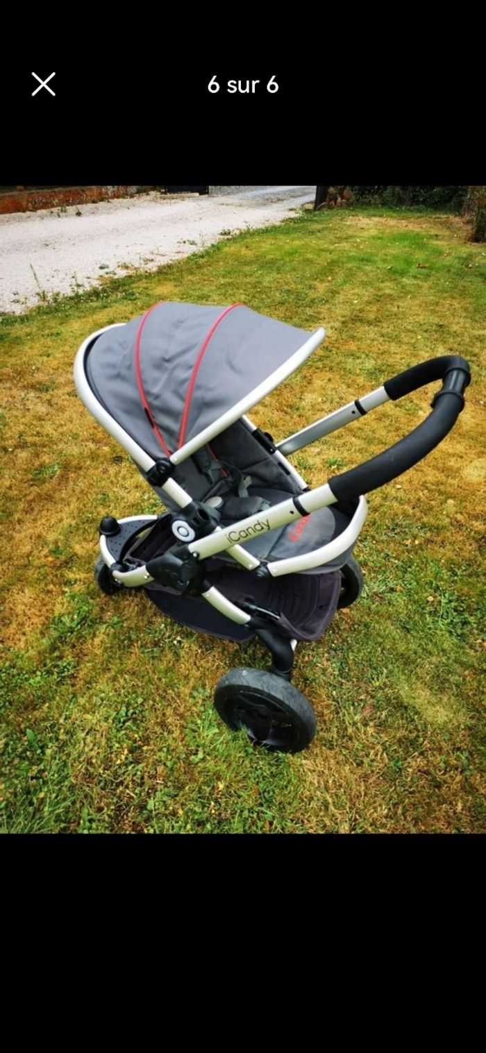 À vendre poussette avec nacelle et vêtement de pluie de la marque "I Candy". Modèle Peach. Poussette tout terrain avec roues gonflables, gonfleur vendu avec. 3 plans d'inclinaison de la poussette. Peut s'installer face ou dos à la route. Grand porte bagage. Guidon réglable en 3 hauteurs. Se plie et se déplie facilement.