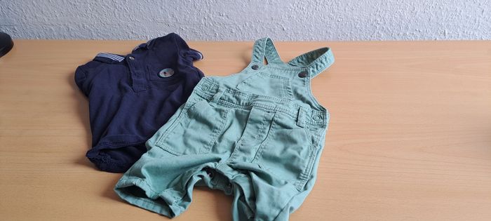 Bonjour, Je vends cet ensemble t-shirt combi taille 6 mois Très bon etat