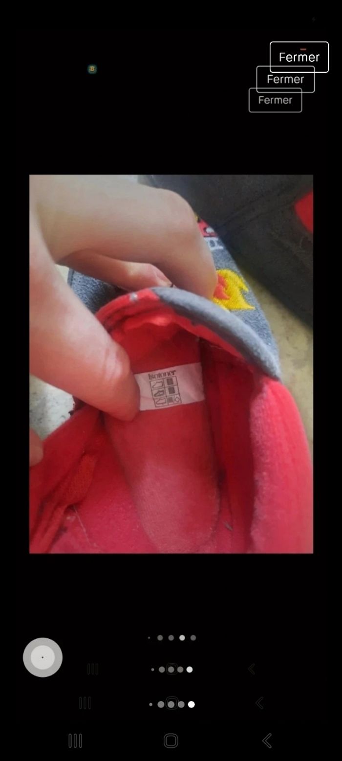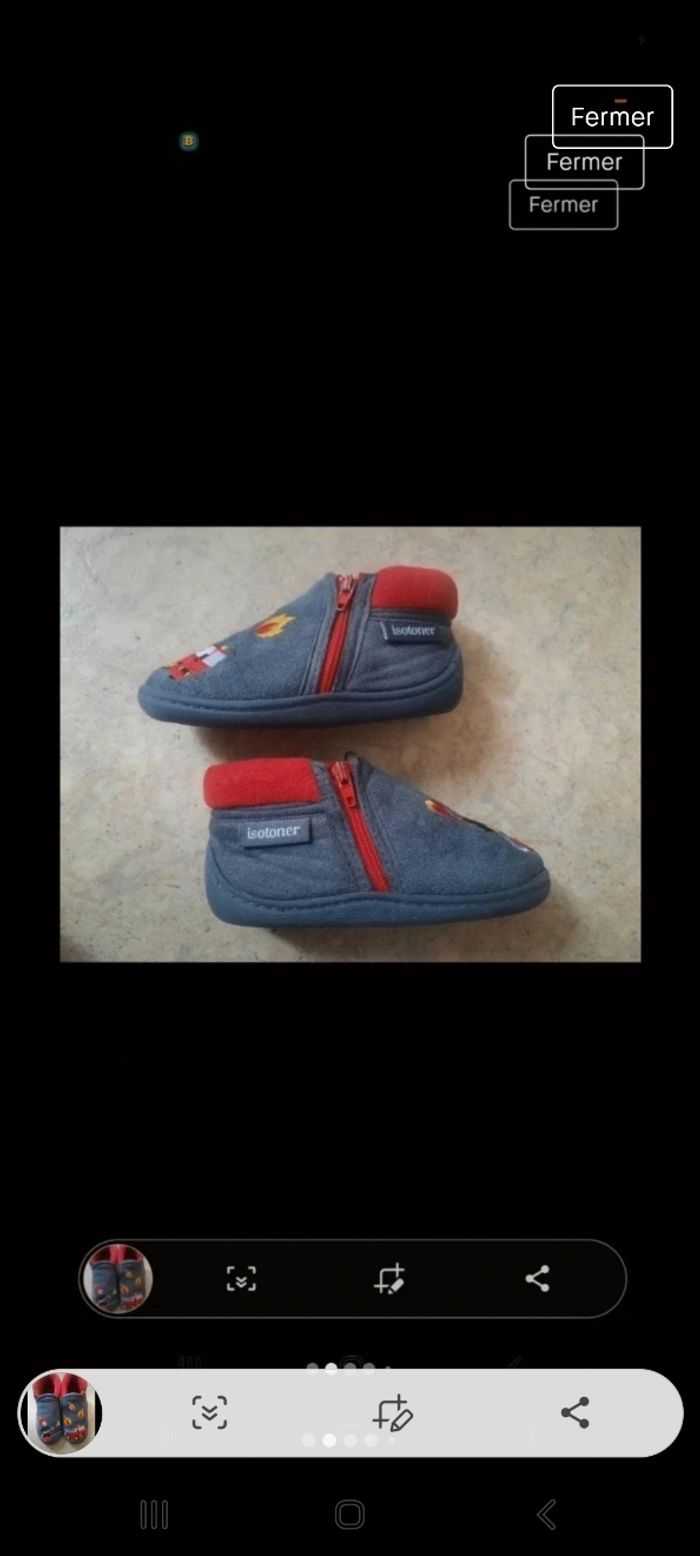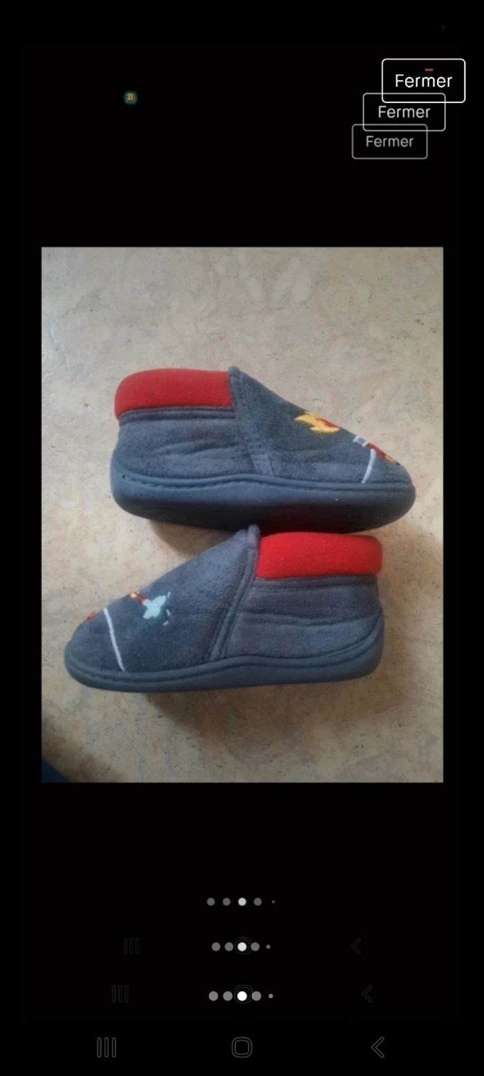 Chaussons isotoner. Taille 22. Très bon état. Fermeture éclair. Tient bien la cheville. Motif pompier.